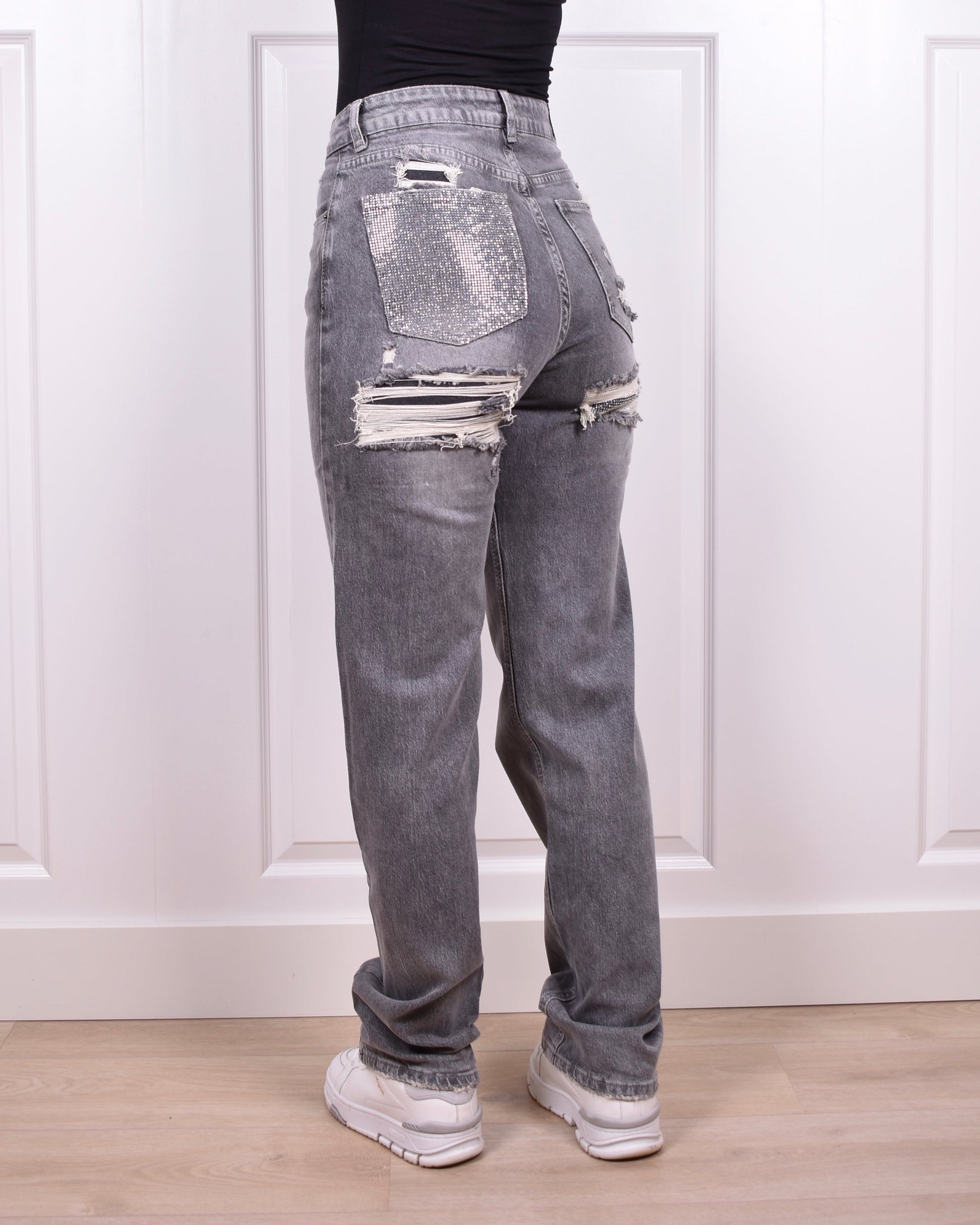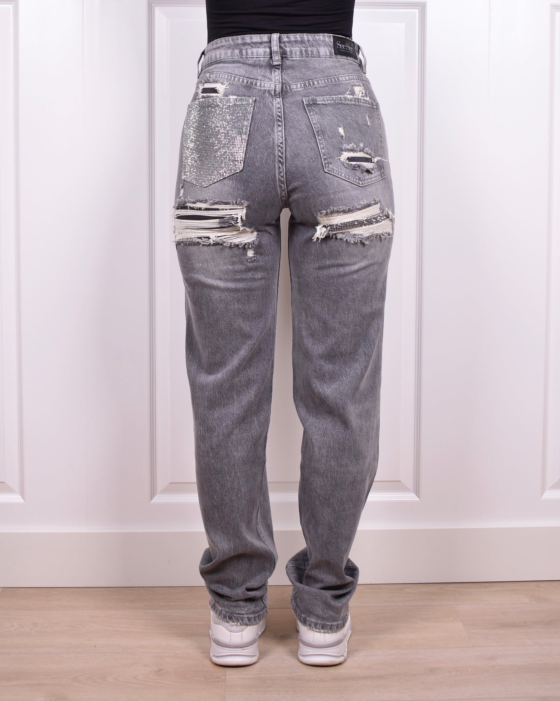 Light grey Rhinestone bum ripped jeans