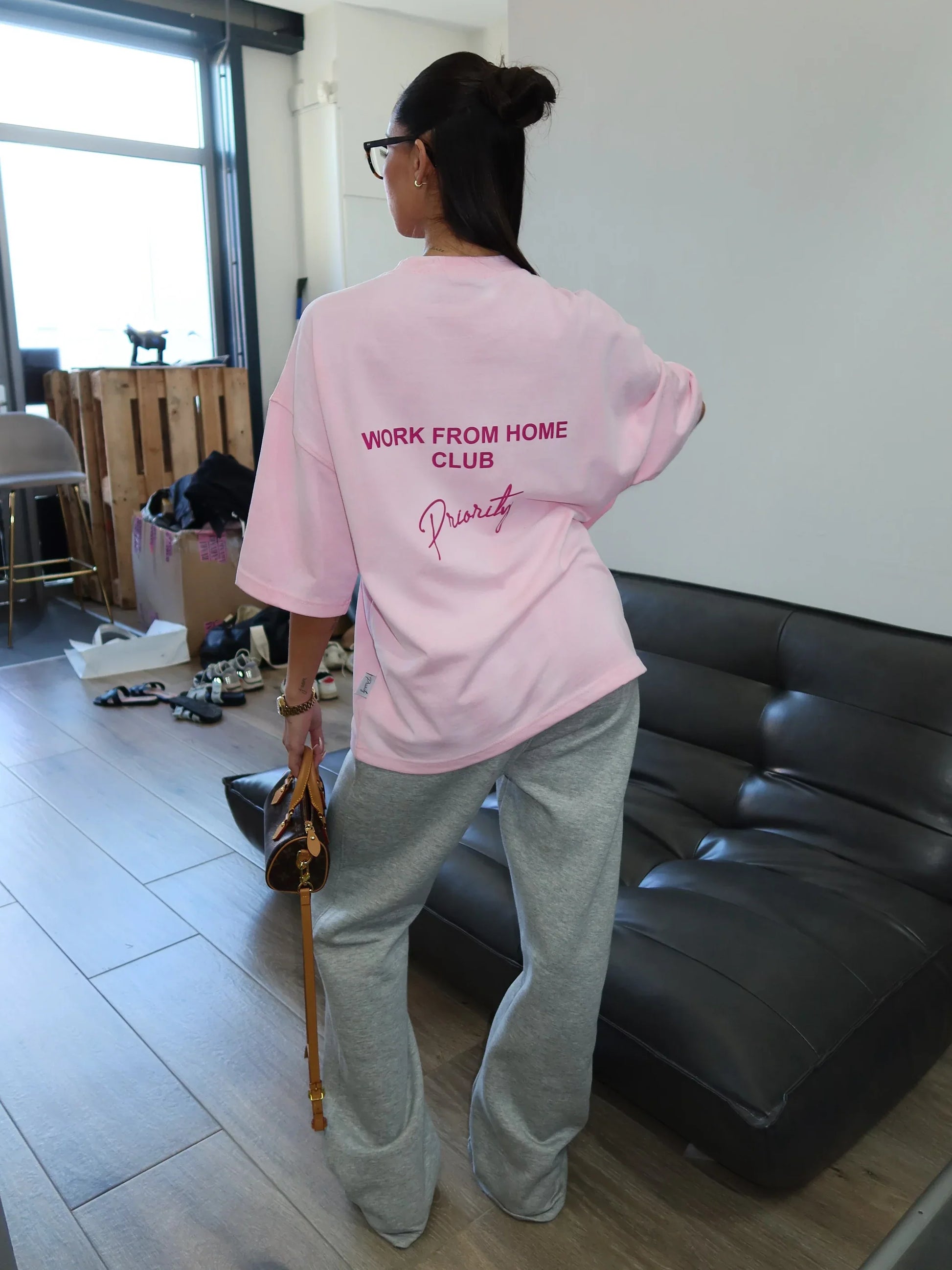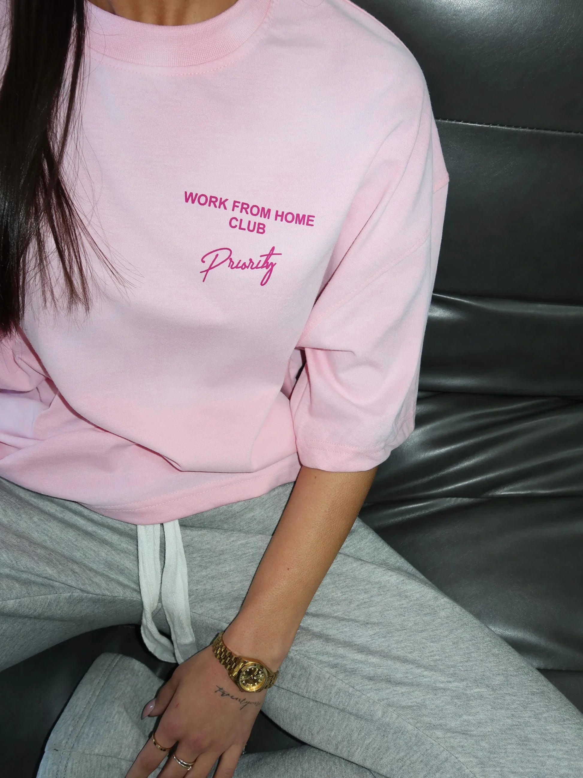 Work from home tee pink